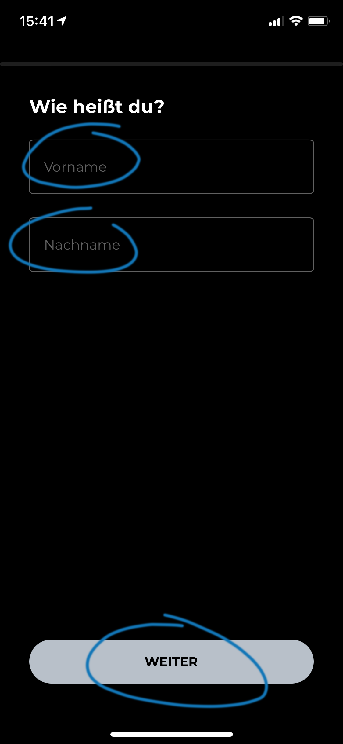 App öffnen, AGB und Datenschutzerklärung bestätigen.